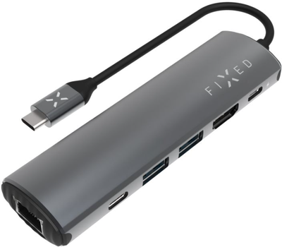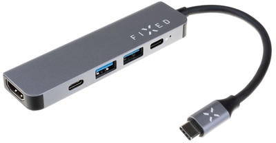 Fixed 5-port USB-C HUB Mini sülearvutitele ja tahvelarvutitele, hall