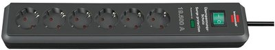 Brennenstuhl Eco-Line 6-Outlet 1.5m Extension Cord H05VV-F 3G1.5, Black