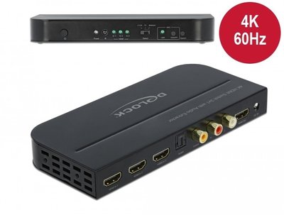 Delock HDMI Switch 3 x HDMI in to 1 x HDMI out 4K 60 Hz with Audio Extractor, ARC support