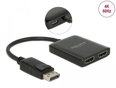 Delock DisplayPort 1.4 Splitter 1 x DisplayPort to 2 x HDMI MST