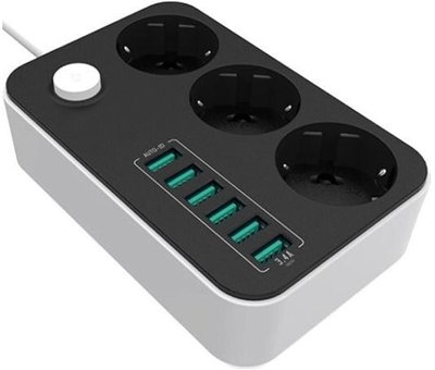 10 A | Power Socket :3 EU plugs/6USB Blac | CW-CHE36B | Black | 1.8 m
