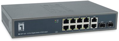 LevelOne Switch 10x GE GEP-1221 2xGSFP 19" 150W 8xPoE