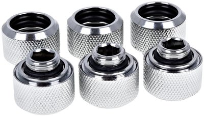 Alphacool Eiszapfen 16mm HardTube compression fitting G1/4 - knurled - chrome sixpack