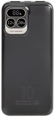 Powerbank RIVACASE 10000 mAh USB-C 20W + LCD black (1x I/O USB-C PD 18W / PD 20W, 2x USB-A QC 3.0 18W, LCD, black)