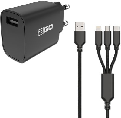 2GO Ladegerät 15W inkl. Kabel 1xUSB-A 1xMicroUSB 1xLightn sw