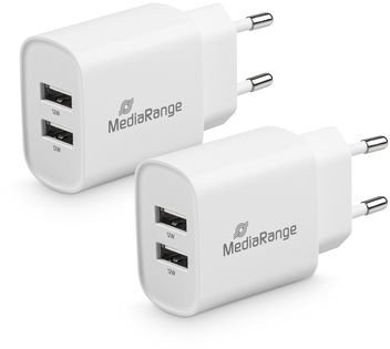 MediaRange 12W 2-Port USB-A Charger, White