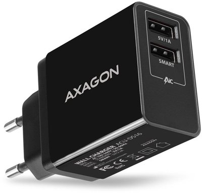 AXAGON Dual wall charger 240V/2x port 5V-2.2A and 5V-1A, 16W | ACU-DS16