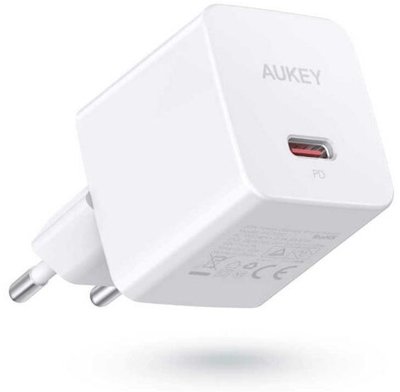 Aukey Mini mains charger PA-Y20S White 1xUSB-C 20W PD Power Delivery