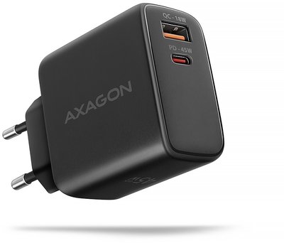 Axagon ACU-PQ45 GaN 45W USB-A/USB-C Fast Wall Charger, Black