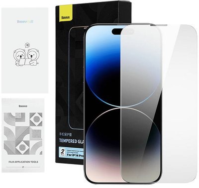 Privacy tempered Glass Baseus Iphone 14 Pro Max (2pcs) with 2 cleaning kits and dust-proof installation tool