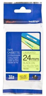 Brother TZC51 24 мм черный на неоново-жёлтом лента