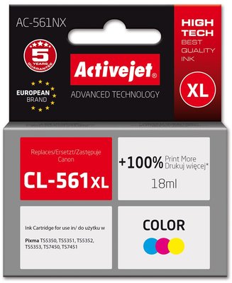 Activejet AC-561NX Ink (replacement for Canon CL-561XL; Supreme; 18 ml; Color: Cyan, Magenta, Yellow)