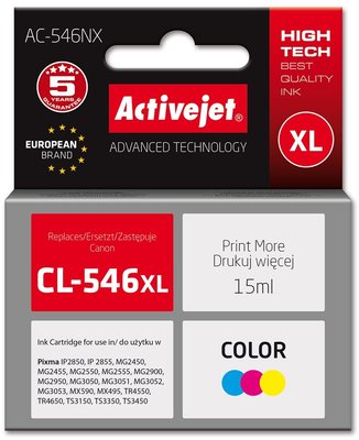 Activejet AC-546NX Printer Ink for Canon, Replacement Canon CL-546XL; Supreme; 15 ml; colour, cyan, magenta, yellow