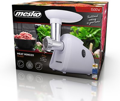 Mesko | Meat mincer | MS 4809 | White | 350 W | Middle size sieve; mince sieve; poppy sieve; plunger; sausage filler
