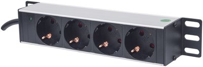 Intellinet 10" 1U Rackmount 4-Way Power Strip - German Type", With Power Indicator, No Surge Protection, 1.8m Power Cord