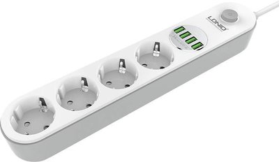 Power strip with 4 AC sockets, 4x USB, LDNIO SE4432, 2m (white)