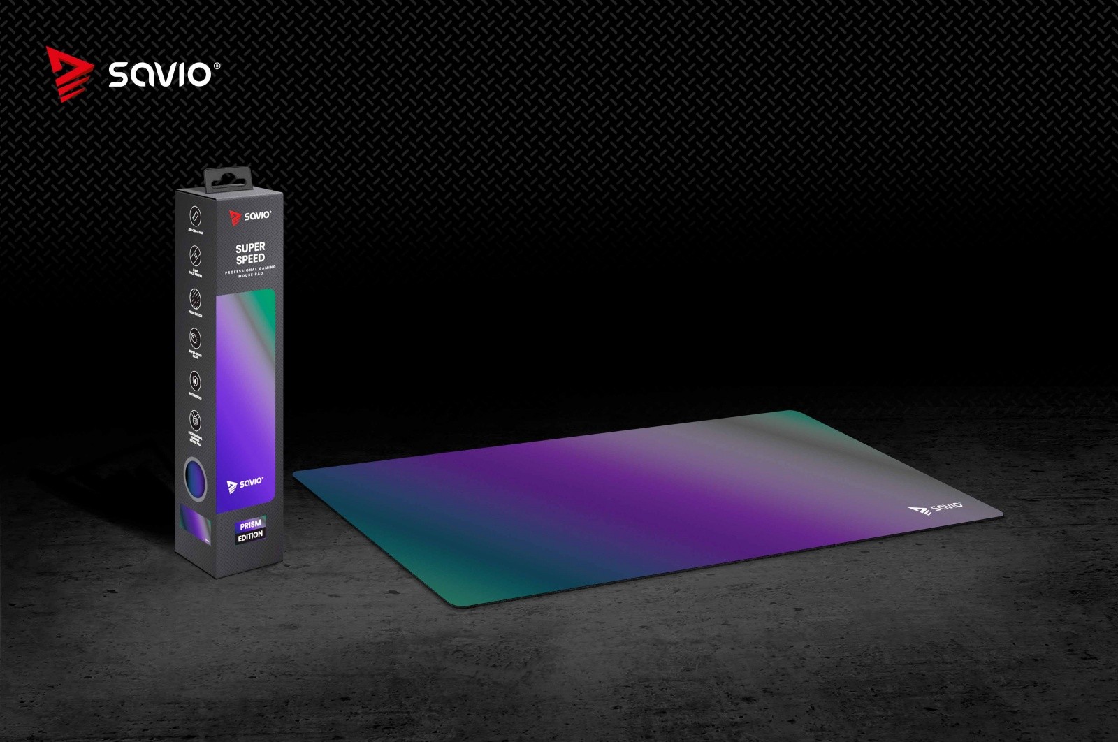The Savio Prism Edition Super Speed L gaming mouse pad combines modern design, precision, and functionality created for the most demanding gamers. Its unique prismatic color gradient makes your gaming setup stand out, while the specially engineered surface ensures full control and smooth movement in every situation. This accessory not only enhances comfort during gameplay but also adds a professional touch to your desk.