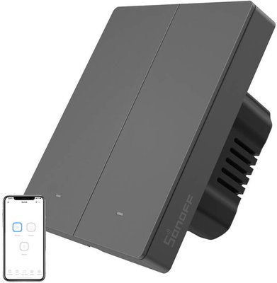Smart WiFi wall switch SONOFF M5-2C-80 (2-channel, for frame, graphite)