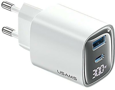 Usams 30W GaN LED USB+USB-C Laadija CC229 Valge