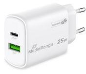 MediaRange Ladegerät 25W 2-Port 1x USB-A1x USB-C GaN, weiß