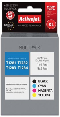 Activejet AEB-1285N Ink (replacement for Epson T1281, T1282, T1283, T1284; Supreme; 1 x 15 ml, 3 x 13 ml; black, magenta