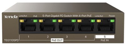 Tenda TEG1105PD network switch Gigabit Ethernet (10/100/1000) Power over Ethernet (PoE) Brown