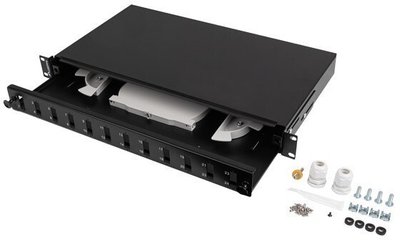 LANBERG 12XSC DUPLEX / 12XLC QUAD RACK 19" 1U FIBER OPTIC DISTRIBUTION FRAME BLACK + ACCESSORIES
